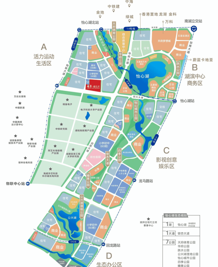 占地约398亩蔚蓝湖滨城的产业规划设计是美国WATG,这家世界知名设计公司,以全球化眼光,为怡心湖规划出独一无二更为开放和复合的艺术城市空间。环绕怡心湖,建筑体量约120万平米。规划涵盖湖滨商业、蔚蓝湖滨1号、阿丽拉Alila酒店、凯悦尚萃Hyatt Centric酒店、湖滨艺术中心等丰富业态。创智科技产业园2号地块,由空港置业牵头,规划引进大型商购中心,目前正积极接洽包括万达、华润、银泰、合生、伊藤等商业公司。