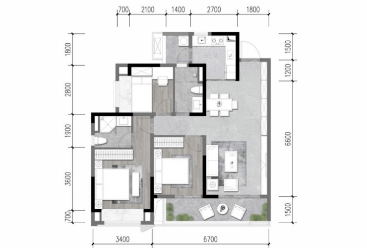 丨建面约108㎡ 精致舒居三房丨��入户玄关设计,归家仪式感��6.7米宽景阳台,尺度感强��约21平米星级酒店主卧套房��L型独立厨房+独立生活阳台