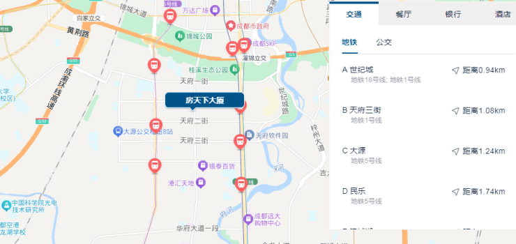 房天下大厦位于高新区世纪城天府二街,总建面6000平方米,标准写字楼楼层12层,总停车位410个,开发商为成都房天下房地产开发公司。房天下大厦物业地址位于高新区世纪城天府二街368号,距离地铁1号线世纪城站约929米。