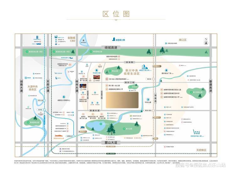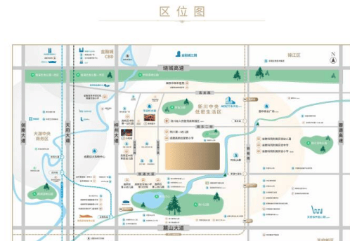 区域内共规划24所公立学校、包括13所幼儿园、7所小学、2所中学、2所九年一贯制学校等 ,1所私立学校 金苹果锦城一中(K12),教育资源丰富,年龄段全覆盖;新川雅境 : 行知小学、新华学校、四川省教科院附小、高新区蒙新小学、四川省教科院附小崇和校区。