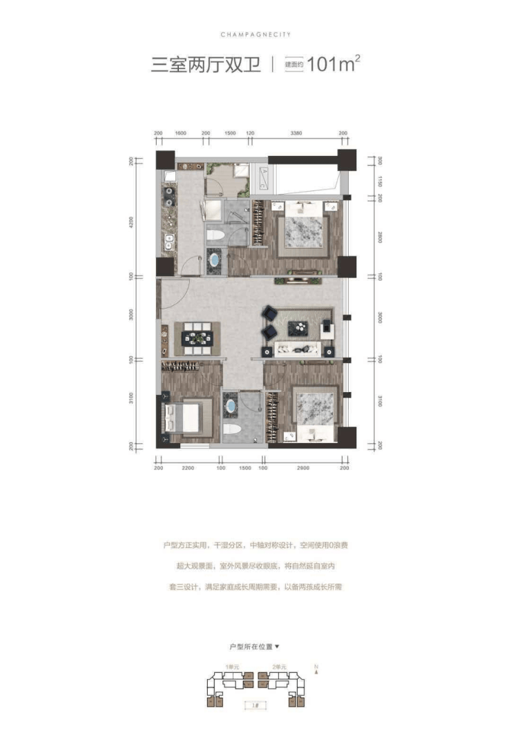 商业配套:自带8万方商业体,旁边签约万达广场,西靠万象城商圈