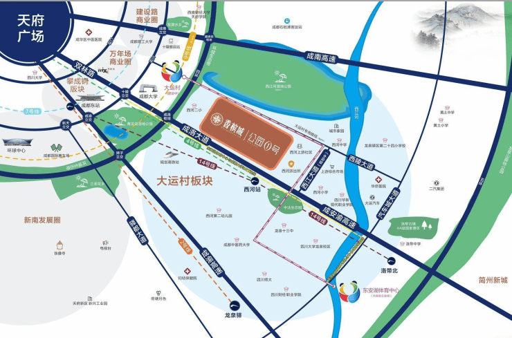 交通十分便捷:4号线地铁终点站-西河地铁,政府未来交通规划:20/30号线地铁,大运会到东安湖的BRT 快速公交,及成洛大道未来会改造成成洛简快速通道直达天府机场