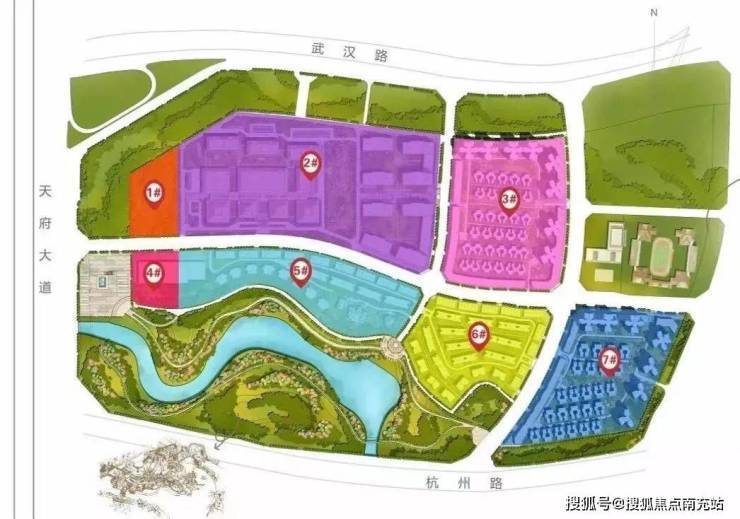 在整体规划布局中,1号地块被规划用于建造地标写字楼,2号地块将用于建设万达国际医院。而4 - 5号地块,因其临水且毗邻公园,具备得天独厚的整体环境优势,所以被规划设计为商墅。
