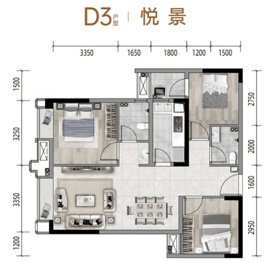 。- **D3 户型 悦景**:建筑面积约 85.87 - 85.93㎡,属于三房双卫实用户型。小面积却具备多功能设计,客厅赠送飘窗,有效拓宽了生活空间。客餐厅一体的设计,让一家人的惬意时光在此温馨收藏