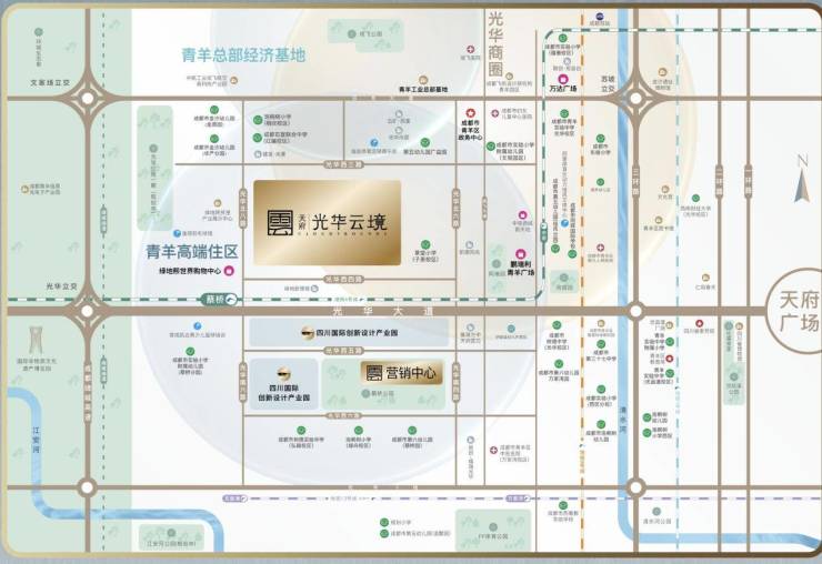 中学:树德中学弘毅校区、石室联合中学红碾校区、成都市青羊实验中学光华校区、树德中学光华校区。2大核心商圈:青羊万达广场、鹏瑞利广场等,超约50万方醇熟商业覆盖。交通便捷:3横3纵2地铁,立体交通全维覆盖,距地铁4号线蔡桥站直线距离仅300米左右,在建地铁13号线。