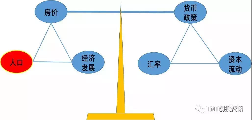 因此,基于大量经验数据可以发现,经济发展、高房价和人口高增长三者之间组成一个“不可能三角”即:一个成熟发达经济体,不可能实现经济发展、房价高位、人口高增长率。