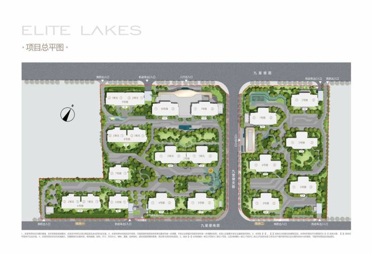 中海·湖光玖里占地约50.1亩,容积率2.0,绿地率约35%,分为了东西两个地块,布局了16栋全1梯2户或2梯2户的8F、11F、15F和17F的“洋房”小高层,总户数为530户,是公园区难得的纯板式洋房住区。