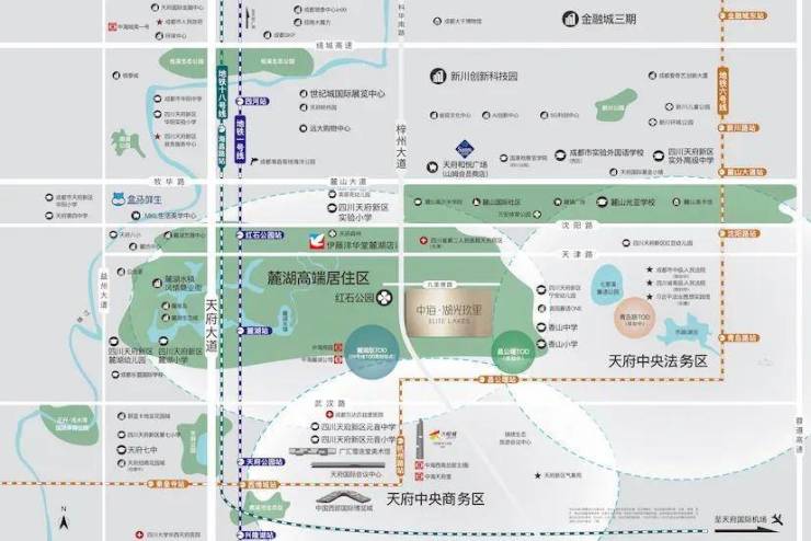 医疗方面,项目周边最近的就是四川省第二人民医院、万达国际医院和天府新区安琪儿国际妇女儿童医院,此外还有天府华西医院。