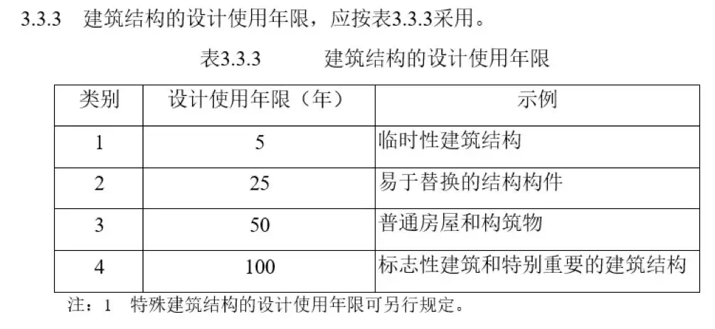 3.3.2建筑结构设计时,应规定结构的设计使用年限。