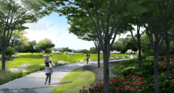 占地约500亩,向东北步行约300米即达,包含绿化、景观、绿道、配套设施等多个方面功能,可以满足老年人、儿童、青少年等全龄群体对公园绿地休闲娱乐的需求。
