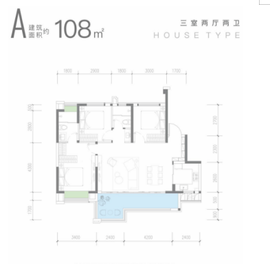 面积段:目前在售108㎡-134㎡