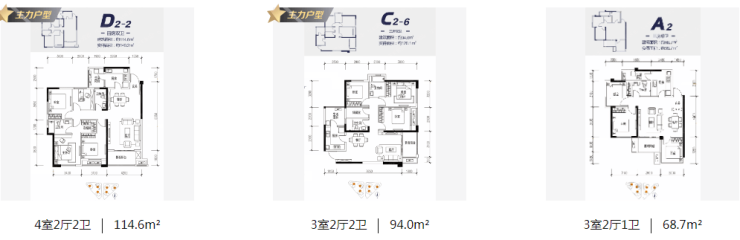 3室2厅2卫 (建面94.0m²) 4室2厅2卫 (建面114.6m²)